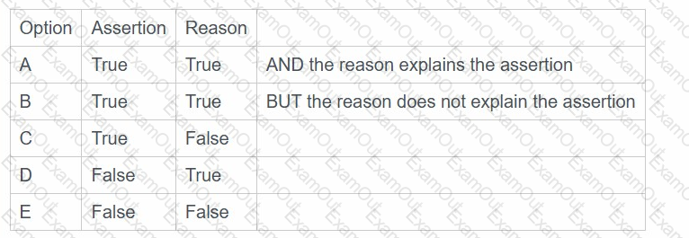Lines 1 to 4 in the table below consist of an assertion statement and a reason statement. For each line identify the appropriate option, from options A to E, that applies.