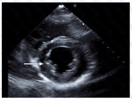 Which echogenic structure is indicated by the arrow on this image?