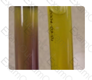Conversion of only the slant to a pink color in a Christensen's urea agar slant is produced by bacterial species that have weak urease activity. The reaction in the slant to the right is often produced by Klebsiella species, as an example. Strong urease activity is indicated by conversion of the slant and the butt of the tube to a pink color, as seen in the tube to the left. The slant only reaction in the right tube may be seen early on if only the slant had been inoculated; however, with a strong urease producer, both the slant and the butt would turn. Therefore, the reaction is dependent on the strength of urease activity. If the media had outdated for a prolonged period, either there would be no reaction or the appearance of only a faint pink tinge, either in the slant, the butt or both, again depending on the strength of urease production by the unknown organism.