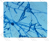 Trichophyton verrucosum may produce microconidia in small quantities. However, they are irregularly arranged with little tendency to line up along the hyphae. Antler hyphae and string bean macroconidia are characteristic of this species.