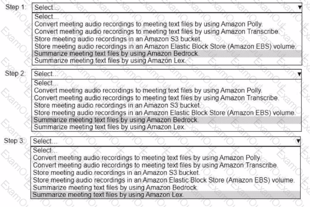 A company wants to create an application to summarize meetings by using meeting audio recordings.