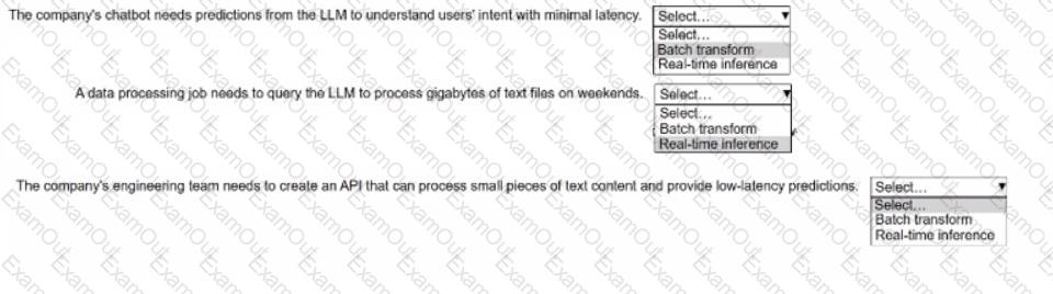 Select the correct inference mode from the following list for each use case. Each inference mode should be selected one or more times. (Select THREE.)