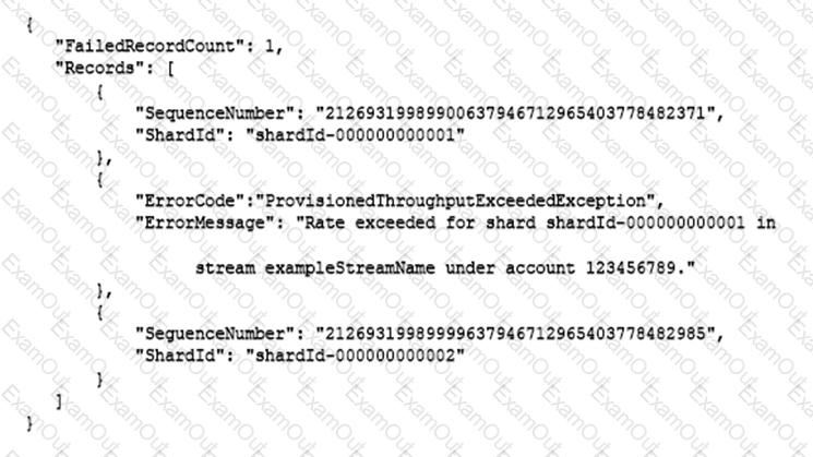 An application is processing clickstream data using Amazon Kinesis. The clickstream data feed into Kinesis experiences periodic spikes. The PutRecords API call occasionally fails and the logs show that the failed call returns the response shown below:
