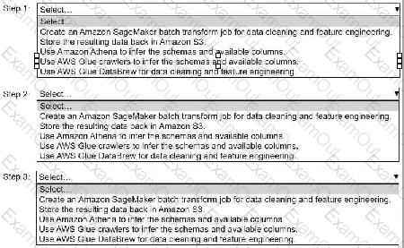 • Create an Amazon SageMaker batch transform job for data cleaning and feature engineering.