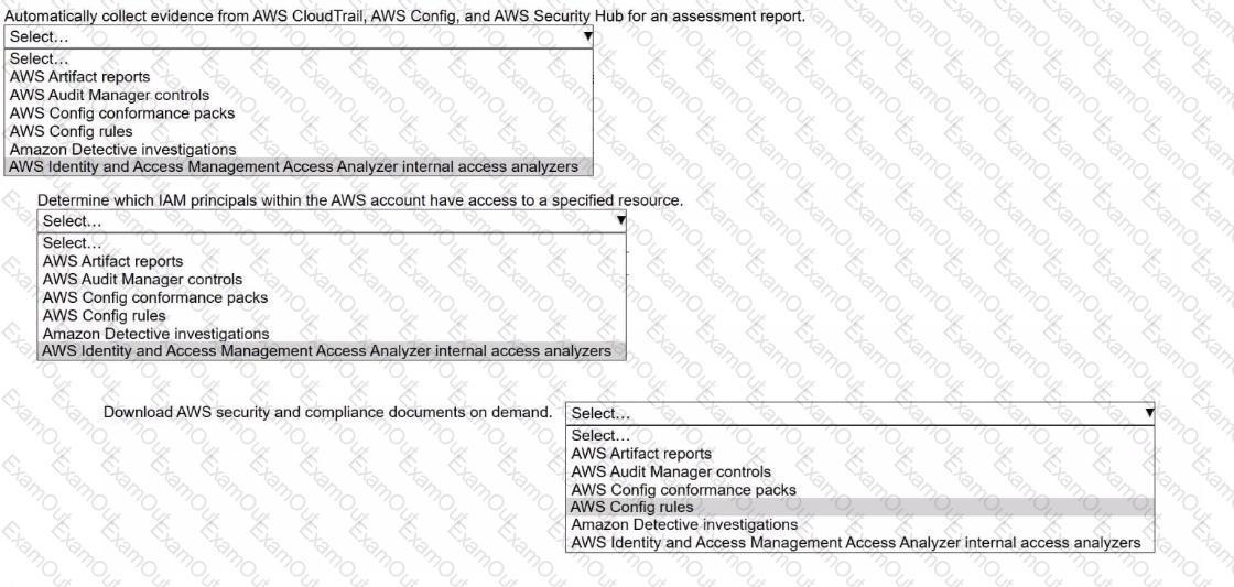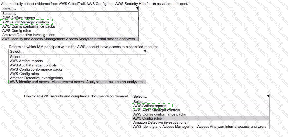 Select the correct AWS resource from the following list to meet each requirement. Select each resource one time or not at all. (Select THREE.)
