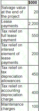 The trainee management accountant has begun evaluating the lease versus buy decision and has produced the following data. He is not confident that all this information is relevant to this decision.