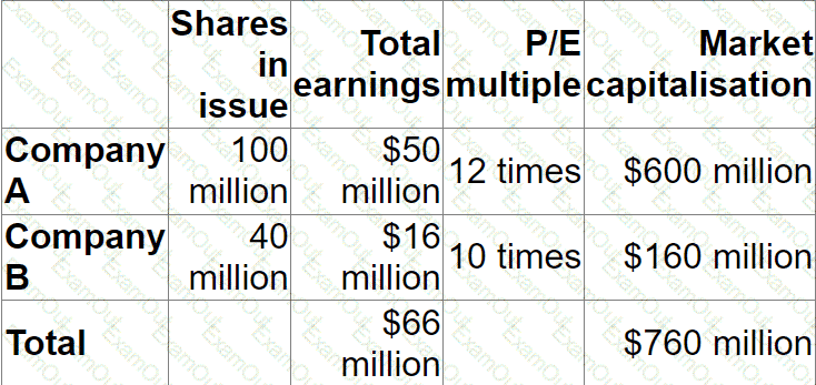 • Company A has 150 million shares in issue, with market price currently at $7.00 per share.