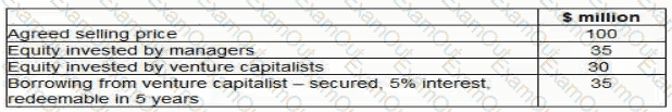 The business unit managers have been in discussions with a bank and venture capitalists regarding the financing for the MBO The venture capitalists are only prepared to invest a mixture of debt and equity and have suggested the following: