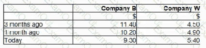 Company W has received an unwelcome takeover bid from Company B. The offer is a share exchange of 3 shares in Company B for 5 shares in Company W or a cash alternative of $5.70 for each Company W share.