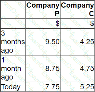 Company P is approximately twice the size of Company C based on market capitalisation.