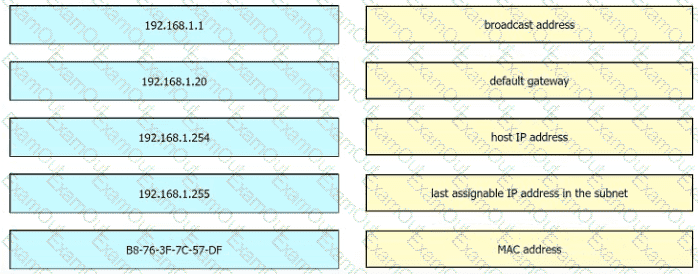 An engineer is tasked with verifying network configuration parameters on a client workstation to report back to the team lead. Drag and drop the node identifiers from the left onto the network parameters on the right.