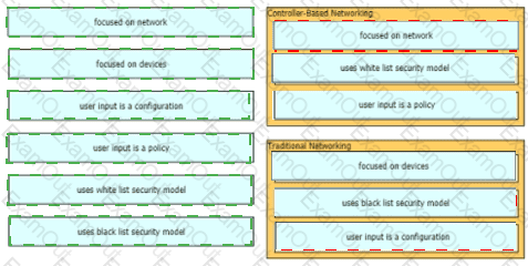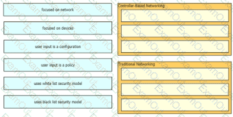 Drag and drop to the characteristics of networking from the left onto the correct networking types on the right.