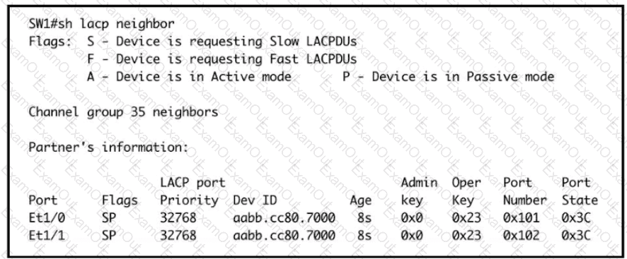 Based on the LACP neighbor status, in which mode is the SW1 port channel configured?