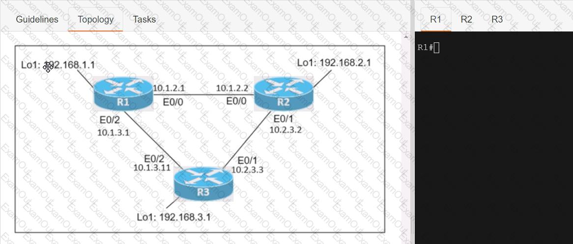 1. Configure R1 and R2 Router IDs using the interface IP addresses from the link that is shared between them.