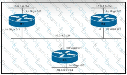 Routers R1 and R3 have the default configuration The router R2 priority is set to 99 Which commands on R3 configure it as the DR in the 10.0 4.0/24 network?