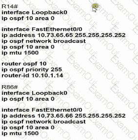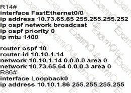 Which configuration allows routers R14 and R86 to form an OSPFv2 adjacency while acting as a central point for exchanging OSPF information between routers?