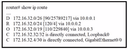 A packet sourced from 172.16.32 254 is destined for 172.16.32.8. What is the subnet mask of the preferred destination route?