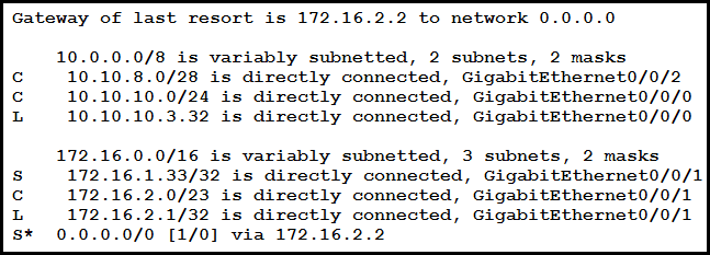A packet sourced from 10.10.10.1 is destined for 10.10.8.14. What is the subnet mask of the destination route?