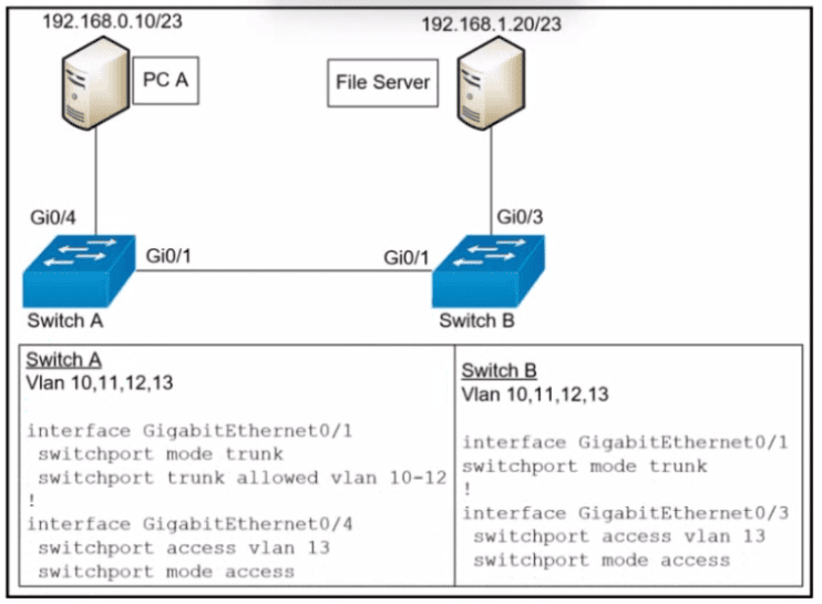 PC A and the file server. Which commend must be configured on switch A to prevent interruption of other communications?