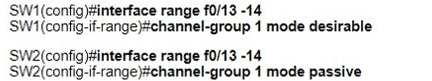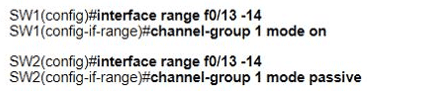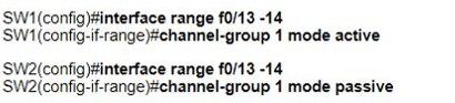 Which set of commands must be applied to the two switches to configure an LACP Layer 2 EtherChannel?