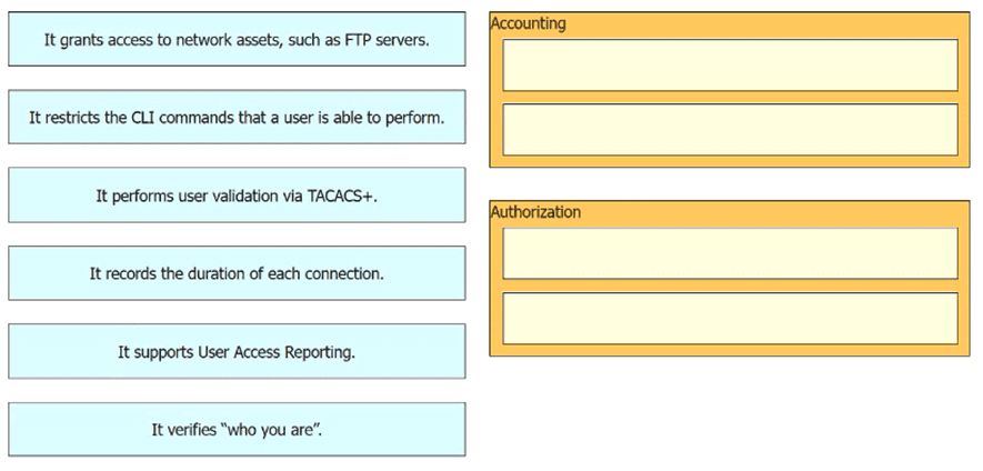 Drag and drop the statements about AAA from the left onto the corresponding AAA services on the right. Not all options are used.