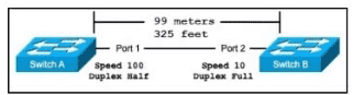 The switches are connected via a Cat5 Ethernet cable that was successfully tested. The Interfaces are configured as access ports and are both in a 'down" status. What is the cause of this issue?