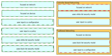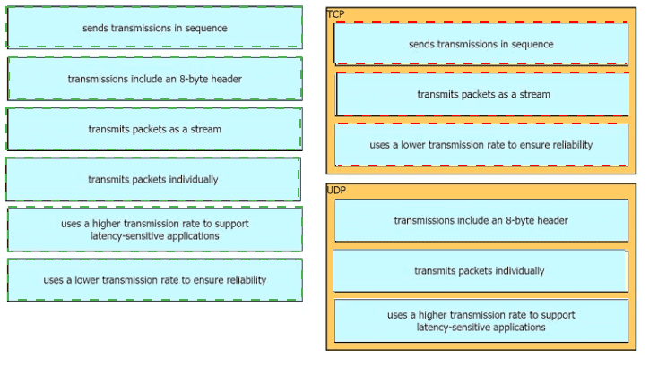 Drag and drop to the characteristics of networking from the left onto the correct networking types on the right.