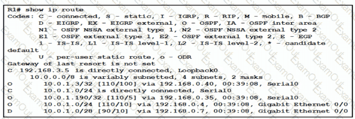 Router R1 resides in OSPF Area 0. After updating the R1 configuration to influence the paths that it will use to direct traffic, an engineer verified that each of the four Gigabit interfaces has the same route to 10.10.0.0/16. Which interface will R1 choose to send traffic to reach the route?