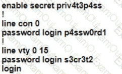 • The password for privileged EXEC mode is pnv4t3p4ss Which command sequence must the engineer configured