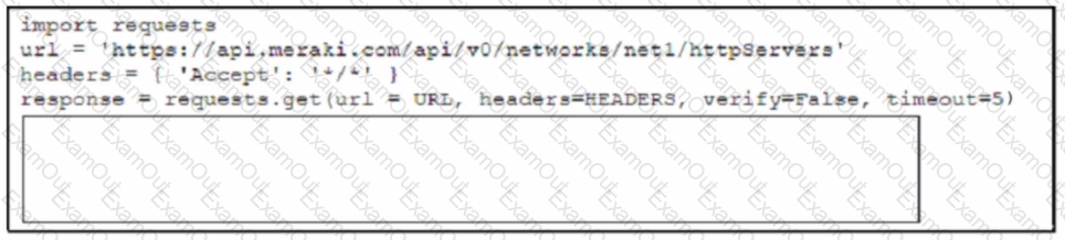 Refer to the exhibit. A developer creates a Python script by using the Cisco Meraki API. The solution must: