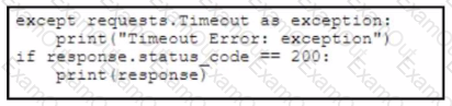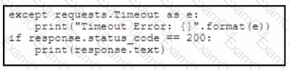 • Handle the timeout requests as exceptions, and print Timeout Error next to the exception to stdout.