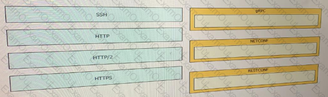 Drag and drop the network automation interfaces from the left onto the transport protocols that they support on the right. (Not all Options are used)