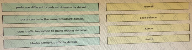 Drag and drop the functionalities from the left onto correct networking devices on the right.