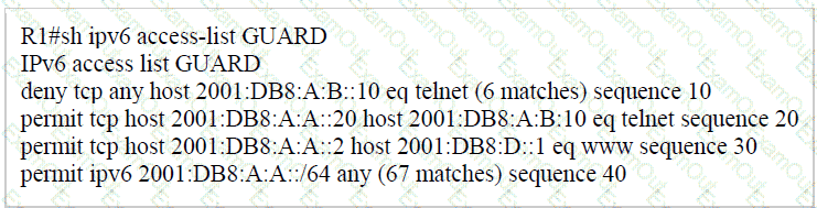 PC2 is directly connected to R1. A user at PC2 cannot Telnet to 2001:db8:a:b::10. The user can ping