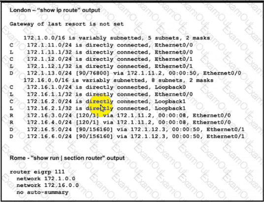 London must reach Rome using a faster path via EIGRP if all the links are up but it failed to take this path Which action resolves the issue?