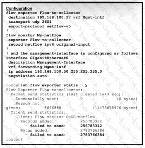 Refer to the exhibit. A network administrator configured NetFlow data, but the data is not visible at the NetFlow collector. Which configuration allows the router to send the records?