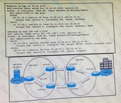 A customer reports that user traffic of bank XYZ to the AAA server is not using the primary path via the R3-R2 link. The network team observes: