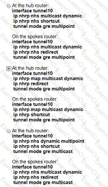 A network engineer must configure a DMVPN network so that a spoke establishes a direct path to another spoke if the two must send traffic to each other. A spoke must send traffic directly to the hub if required Which configuration meets this requirement?