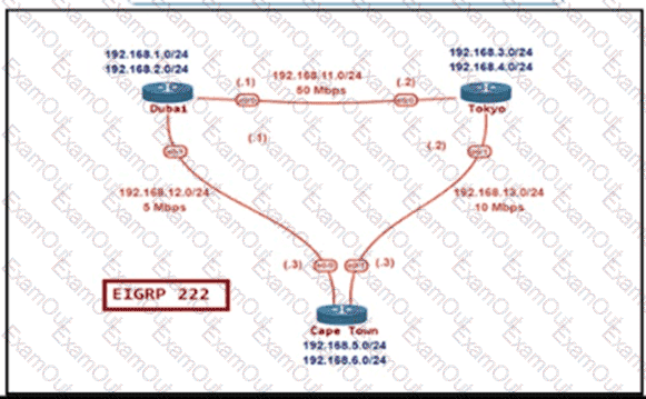 The network administrator must configure Cape Town to reach Dubai via Tokyo based on the speeds provided by the service provider. It was noticed that Cape Town is reaching Dubai directly and failed to meet the requirement. Which configuration fixes the issue?