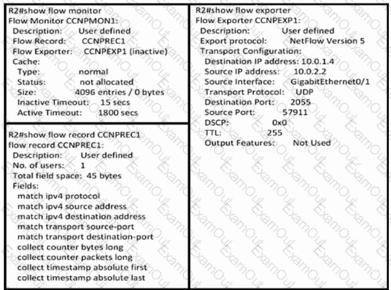 Refer to the exhibit. An engineer uses NetFlow to troubleshoot a voice quality issue from the branch office and notices that the traffic is not arriving in the correct format to the collector. Which configuration resolves the issue?