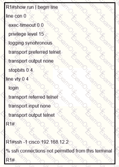 An engineer receives this error message when trying to access another router in-band from the serial interface connected to the console of R1. Which configuration is needed on R1 to resolve this issue?