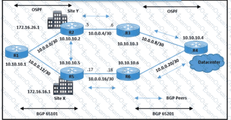 Refer to the exhibit A customer reported a failure and intermittent disconnection between two office buildings site X and site Y The network team finds that site X and site Y are exchanging email application traffic with the data center network Which configuration resolves the issue between site X and site Y?