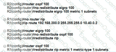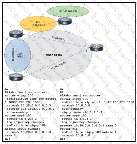 Refer to the exhibit The route to 192 168 200 0 is flapping between R1 and R2 Which set of configuration changes resolves the flapping route?