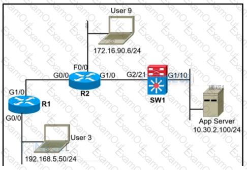 A network administrator must block ping from user 3 to the App Server only. An inbound standard access list is applied to R1 interface G0/0 to block ping. The network administrator was notified that user 3 cannot even ping user 9 anymore. Where must the access list be applied in the outgoing direction to resolve the issue?
