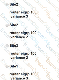 Refer to the exhibit. Site1 must perform unequal cost load balancing toward the segments behind Site2 and Site3. Some of the routes are getting load balanced but others are not. Which configuration allows Site1 to load balance toward all the LAN segments of the remote routers?