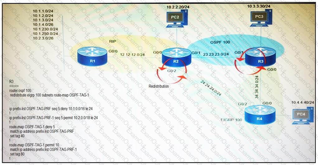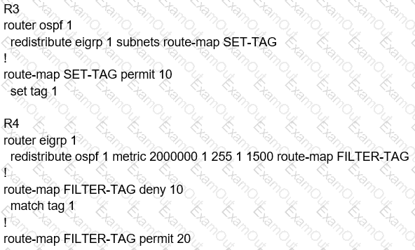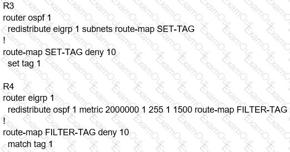 Which subnet is redistributed from EIGRP to OSPF routing protocols?