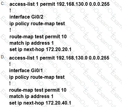 Which configuration configures a policy on R1 to forward any traffic that is sourced from