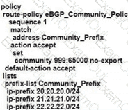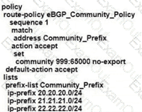 The engineer must assign community tags to 3 of its 74 critical server networks as soon as that are advertised to BGP peers. These server networks must not be advertised outside AS. Which configuration fulfill this requirement?