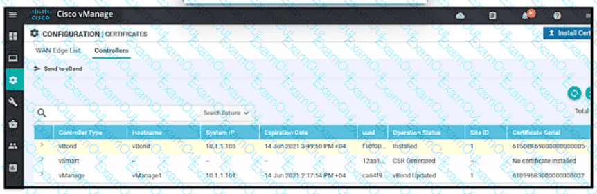Refer to the exhibit vManage and vBond have an issue establishing a connection to vSmart Which two actions does the administrator take to fix the issue? (Choose two)