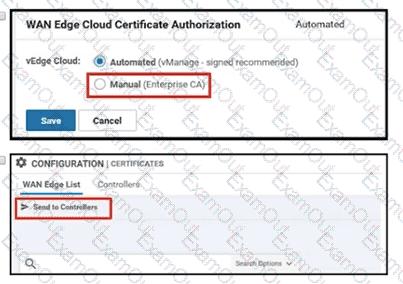 An administrator must deploy the controllers using the On-Prem method while vManage can access the PnP portal from inside How are the two WAN Edge authorized allowed lists to be made available to vManage? (Choose two)